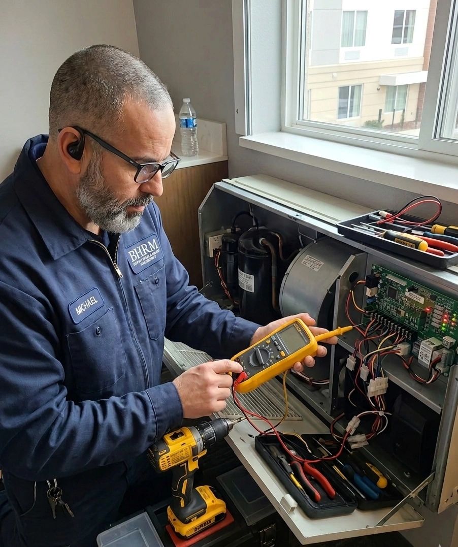 Scheduled inspections of PTAC units, boilers, and refrigeration to prevent costly mid-season failures.